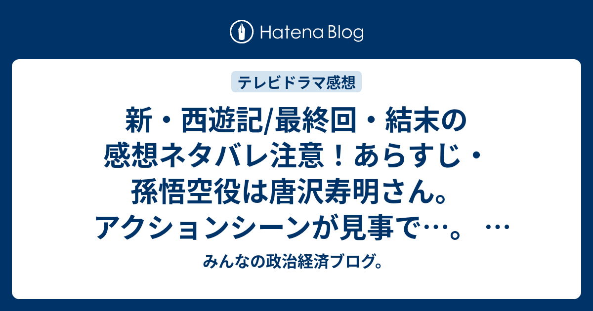新 西遊記 最終回 結末の感想ネタバレ注意 あらすじ 孫悟空役は唐沢寿明さん アクションシーンが見事で テレビドラマ みんなの政治経済ブログ